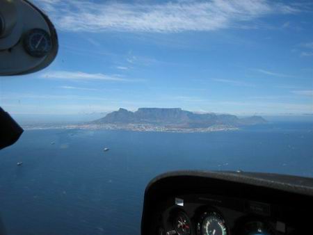 "En dit is Kaapstad vanaf de kant van False Bay gezien, met duidelijk Table Mountain uitgelijnd.