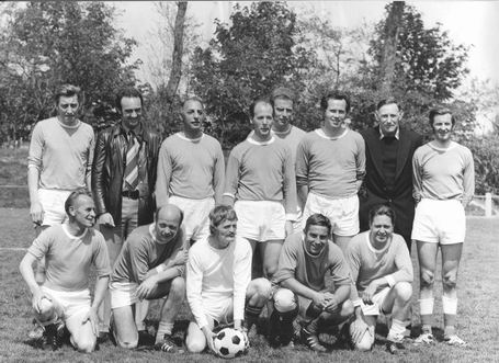Een echt veteranenteam hield de v.v. Zuidhorn er toen niet op na, Dick Bakker kwam erbij, toen hij 29 jaar was. De ploeg heeft ook niet gespeeld in de speciale veteranenklasse, maar in de "gewone" derde klasse van de afdeling Groningen van de KNVB. Soms spelend tegen andere "oudjes", maar ook wel uitkomend tegen jonkies, die harder liepen, maar minder goed voetbalden. In latere jaren heb ik wel deel uitgemaakt van dit elftal, deels met spelers van het afgebeelde team. Met weemoed denk ik aan de jongens die veel te vroeg zijn overleden: Dickie Bakker in de eerste plaats, Jan Hansma, Gerrit Sturing….. Harry Nanninga leeft ook niet meer, evenmin als leider Kees de Jager. Ook al is het jaren geleden, je vindt jezelf zo maar terug op het veld, in de zaal, in de kleedkamers, onder de douches… Wie staan er op bovenstaande foto?
