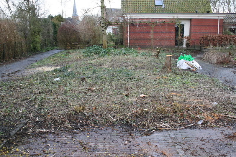 Een complete overrompeling, waarbij ik me niet direct naar buiten waag in verband met de al te hoog oplopende bloeddruk. Later pak ik dan toch maar de Canon en kiek wat om me heen, complete treurnis. Goed, het perk was geen toonbeeld van keurig onderhouden groen, maar is dat nou zo erg? (Bovendien, wie was daar eigenlijk voor verantwoordelijk?) Is communicatie ineens een vies woord, hoeven aanwonenden, op zijn minst, niet even te worden ingelicht over wat er staat te gebeuren en wat het vervolg zal zijn? Onaangekondigd bomen en struiken omzagen, dat doet zeer, al denk ik niet dat een van de zagers of beleidsbepalers daar een seconde van wakker ligt. Zo gaat dat dus, anno 2008.
