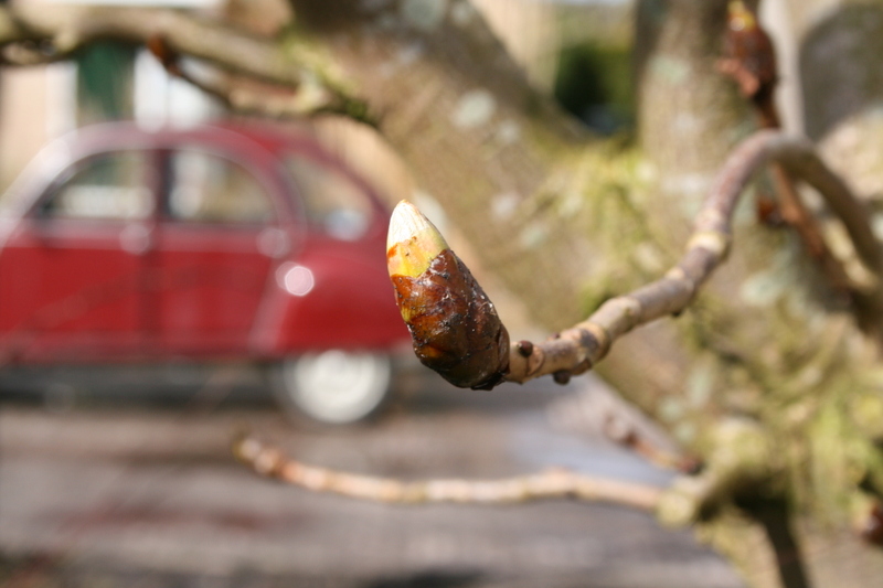 De viooltjes richten fier hun kopjes naar de zon, de kastanjeknoppen zwellen op, glimmen van trots!