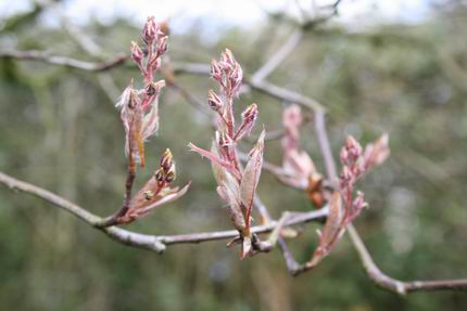 Overal waar mijn voeten mij brengen in dit van gedaante wisselend dorp, zie ik de winter verdwijnen, de lente verschijnen. Vitamines voor de mensen die het straatbeeld bepalen, vriendelijkheid troef. Kijk die rododendronknop eens, die heeft er zin in!