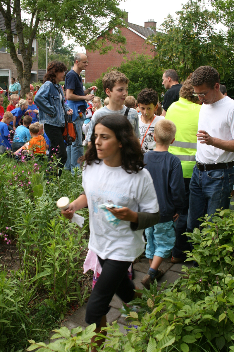 Nog even wat prachtige plaatjes van het wandelfestijn in en om Zuidhorn, dat al jarenlang als Avondwandelvierdaagse door het leven gaat. Speciale aandacht voor de OBS De Toermalijn uit Den Horn, een school met ruim 40 leerlingen, die bijna allemaal deelnamen aan het wandelfeest, natuurlijk vergezeld door een groep ouders + leerkracht. Ook zij werden woensdagavond gastvrij onthaald bij rustpunt (tevens teamlid) Heleen van den Broek aan de Verlengde Oosterweg in Noordhorn. Een bonte schare voegde zich moeiteloos tussen de aanwezige Molshopers, de een uitgelaten, de ander verstild, ieder op zijn eigen manier. Sommigen niet te stuiten in hun woordenstroom, anderen meer gelaten de rustdrukte ervarend, kijken naar mensen blijft een boeiende aangelegenheid.