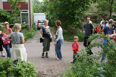 Jonge mensen vooral, die best de ene voet voor de andere willen zetten, maar een plaspauze zeker op prijs stellen en wat drinken met dat benauwde warme weer geenszins afslaan. Trouwens, de versnaperingen bleken minstens zo welkom bij klein én groot…… Even topdrukte voor gastvrouw Heleen en dochter Sil die toch maar haar riante plek in de vensterbank verruilde voor het verlenen van hand- en spandiensten in de verzorgende sfeer.