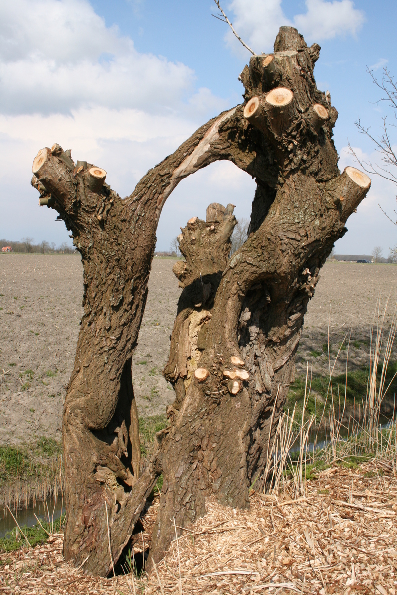 ‘Arbre artistique’, het klinkt toch mooier, sjieker dan: ‘kunstzinnige boom…’ Vooral nu gesprekken steeds vaker uiteenlopende vakantiebestemmingen tot onderwerpen hebben: ‘here, there, evrywhere…’ Nu fotocentrales hun winterslaap zijn vergeten, conversatiecursussen hun vruchten afwerpen, gestamel aan de ontbijttafel meer pijn (aan de oren) dan ‘pain’ oplevert, Sarkozy’s bevallige echtgenote Colombiaans ‘spul’ in haar chansons stopt, "La douce France" vanavond probeert het ‘doux’ te wijzigen in ‘méchant’, daarmee de Orangisten met beide benen terugzettend op de Zwitserse aarde……. Wat de voetbalstrijd ook oplevert (een nieuwe Robben-blessure??), deze opvallende boom aan het Van Starkenborghkanaal heeft heel wat meer te vertellen. Ik hoop niet dat de aanleg van de nieuwe hoge brug nabije hoeve Holtman het echte einde van dit intrigerend verschijnsel betekent. Zoveel toeristische trekpleistertjes hebben we nou ook weer niet…..