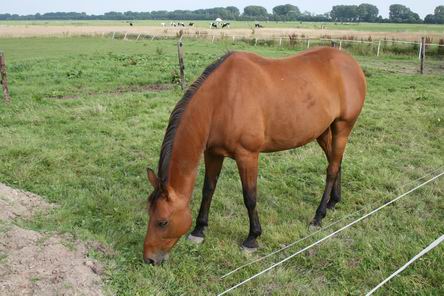 Zoals dit exemplaar, in het weiland langs de Noordhorner Mokkenburgweg bij de spoorbaan. In de zomerhitte, geplaagd door vliegen die met je staart of het schudden van je k…, pardon, van je hoofd nauwelijks zijn te verwijderen.