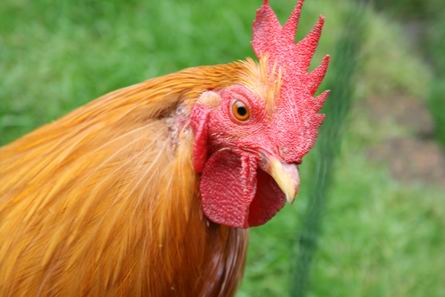 Vrienden van ons hebben een grote tuin en binnen die ruimte bevindt zich ook het kippenhok. Een degelijke binnenruimte en royale ren, gerekend naar de ene haan en vier hennen die hier zijn ondergebracht. Prachtige dieren, bruin van kleur, maar hoe ze heten, dat ben ik vergeten…..