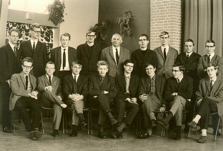 Het laatste jaar voor mij op de Rijkskweekschool in Winschoten was het jaar 1966/1967, een lang jaar, daar het examen voor het verkrijgen van de volledige bevoegdheid pas begin september werd afgelegd. De school was toen al enkele jaren gehuisvest aan de Mr.Stikkerlaan, een nieuw gebouw mét kantine, zodat het klaverjassen niet alleen meer in de klas hoefde plaats te vinden. Een jaar van hard werken, dat herinner ik me nog maar al te goed. (Voor mij denk ik het enige jaar dat ik echt intensief en langdurig hard heb gewerkt, k wor der nog mui van as k deraan denk…) Een mánnenwereld, de feminisering van het lagere cq. basisonderwijs stond nog in de kinderschoenen, zeker als het om schoolleiders ging. De sfeer in de klas was gemoedelijk, maar toch ontbrak er iets…..