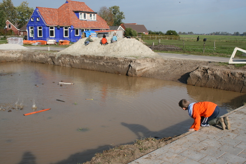 Op bijgaande foto de bouwput die op dit moment aanwezig is langs de Meidoornstraat in Noordhorn. Een klein rupsvoertuig van Balkema-Meijer scharrelt door de grote ruimte en schept hier wat zand weg, gooit het dxc3¡xc3¡r weer neer… Ik kan daar gefascineerd naar kijken en zou het liefst zelf een poos op die manier bezig zijn. In mijn hoofd vormen tollende gedachten therapeutische centra waar volop met zand en water kan worden ‘gespeeld’, zoals in bijgaande bouwput, waar het louter ernst is…. Nu de bouw ook niet helemaal zonder kleerscheuren uit de kredietcrisis tevoorschijn komt, is er wellicht een mogelijkheid ergens van die therapeutische centra te realiseren. (In BlauweStad moet het zxc3xa9ker kunnen…)