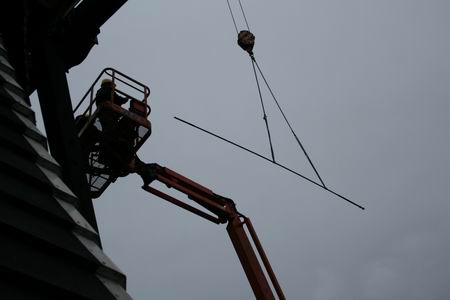 Woensdag 26 november was de enerverendste dag in de restauratiefase tot nu toe. Het gespecialiseerde bedrijf Jellema uit het Friese Burdaard, geassisteerd door een kraan(machinist) van Vrieswijk, haalde de roeden van de molen.