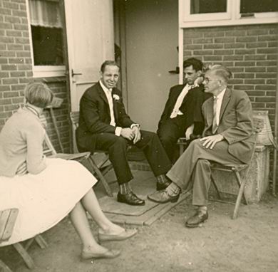 Gistermorgen (18 februari) overleed in zijn slaap Hendrik de Vries, een jongere broer van mijn zwager Fré (die getrouwd is met mijn zuster Gepke). Hendrik groeide, net als zijn broer Fré en zijn zussen Kea en Ria op in Scheemdermeer, aan de Wilhelminalaan. Hij is zijn hele leven vrijgezel gebleven, een ‘Ainspaanjer’. Hendrik was in onze ogen altijd een rustige, goedmoedige man, die liever niet te veel op de voorgrond trad. Hij heeft heel wat werk verzet (bij de Grondmij dacht ik) en ook zijn bijdrage geleverd aan het verenigingsleven. Zo herinner ik me hem vooral als jeugdleider bij de v.v.Scheemda en deed hij veel voor De Stem des Volks (vooral op toneelgebied). Bij het voetballen was hij vooral bekend onder zijn bijnaam "Floris". We hebben elkaar tijden uit het oog verloren, later zagen we elkaar toch nog weer met enige regelmaat. Hij wonend aan de kop van de Donellenlaan in Scheemda, wij op bezoek bij mijn schoonouders, niet zo ver daarvandaan. Later verhuisde hij naar een aanleunwoning op Nieuw Vredenhoven (of heet dat tegenwoordig anders?) en hoorden we alleen nog indirect van hem, vooral over de verslechtering van zijn gezondheid. Toch stuurde hij trouw een kaart met Oud en Nieuw, net als hij eerder deed in de vakantieperiode. Hendrik is 75 geworden. Aan de ene kant jammer, er hadden nog wel wat jaartjes bij gekund, maar waarschijnlijk is hem nu toch ook wel veel leed bespaard. (Zoals nu zijn oudere broer Fré overkomt in een verpleegtehuis in Assen). Ter herinnering hierbij een foto uit een vrolijker fase, het huwelijk van mijn zus Gepke met Fré de Vries. Een ongedwongen kiekje achter het huis van mijn ouders aan de Niesoordlaan in Midwolda, met een knipogende Hendrik (voor zijn familie: Henk) en zijn zwagers Andries en Henk (Bultje). Eind jaren vijfig, waar blijft de tijd…
