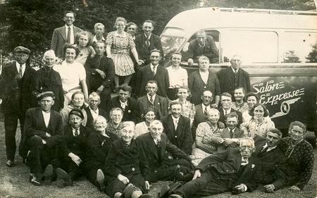 De afgebeelde bus met ‘Salon Expresse’ (en de buschauffeur uit het raampje hangend) is zo goed als zeker van de firma Bronkhorst (tussen Winschoten en Oude Pekela) en de buschauffeur heet Jan Grave. (Met dank aan Willem Pathuis voor deze informatie; hij is een neef van chauffeur Jan Grave, en een oud-klasgenoot van mij op de Rijkskweekschool in Winschoten). Wat de afgebeelde personen betreft, zijn we er bijna uit.