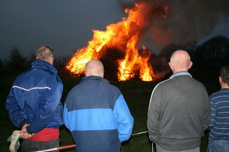 ’s Avonds staat het Paasvuur gepland. De bult heeft door omstandigheden geen recordhoogte bereikt, maar is alleszins de naam Paasbult waardig. Vanaf 20.00 uur vertrekt de fakkeloptocht van de molen door het dorp (het lijkt wel een puzzeltocht) naar het terrein aan de Noorderweg (ijsbaan/sportveld). Het begint snel te donkeren, als de zorgvuldig optredende vrijwilligers met enkele kinderen aan de hand de brand steken in de bult. Na korte tijd zien we een pracht van een fik, de boze geesten krijgen het heel hard te verduren… Veel publiek, een gezellige, ontspannen sfeer, prima weersomstandigheden: Noordhorn vierde Pasen 2009. Uit de tijd, sommige gebruiken? Het is maar net hoe je het bekijkt!