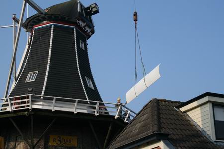 De koren- en pelmolen ‘De Fortuin’ te Noordhorn ziet er weer (bijna) als een echte molen uit. Afgelopen woensdagmorgen (15 april 2009) zijn de nieuwe roeden geplaatst, een spectaculair gebeuren onder ideale weersomstandigheden. De molenbouwers van Vaags (Aalten) en Jellema (Burdaard) zijn nu nog bezig de diverse onderdelen, zoals de fok- en de Van-Busselwieken op de juiste plaats te monteren.