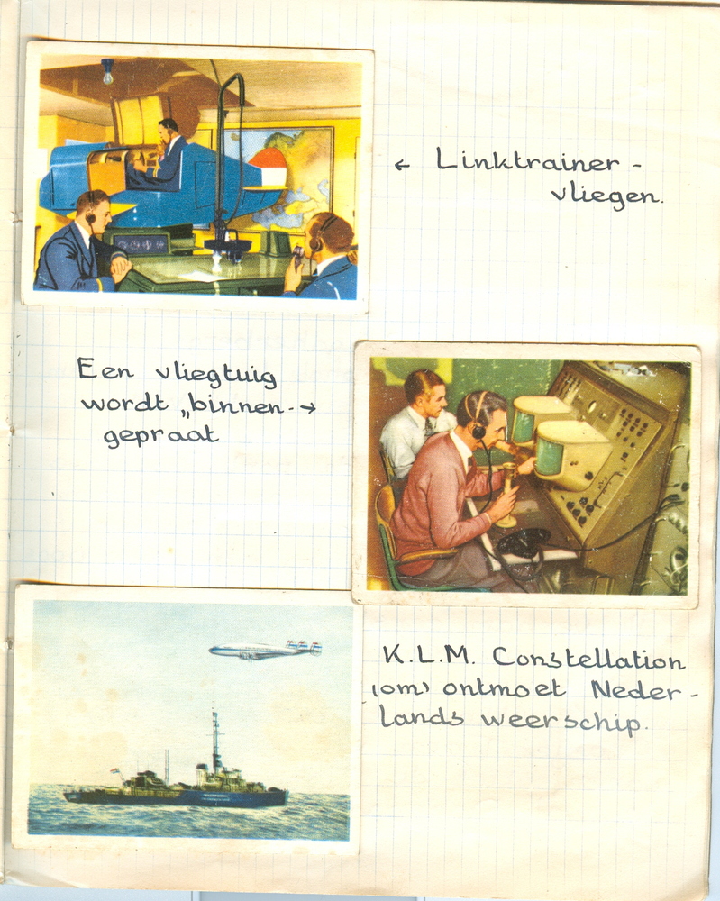 Het was xc3xa9xc3xa9n uit Tokio. Er kwam direct een man aan die op een bepaald stuk staan bleef. Hij hief een bord omhoog. Daar moest het vliegtuig stoppen. Er kwam ook direct een man aanrijden met een trap. Die zette hij tegen de deur van het vliegtuig. Het duurde nog een poosje voor er mensen uit kwamen…. Er was ook een radarscherm. Ik weet niet meer op welk gebouw het stond. Er gierde ook al een straaljager boven ons hoofd. Hij landde ook nog. We waren net bij een groot vliegtuig toen een hevig gebrul ons opschrikte. Toen we omkeken, zagen we het straaljagertje stijgen. Wat was dat een gebrul! Toen we voor een vliegtuig stonden, vertelde de gids ons ook er nog wat van. Bij zo’n propeller laten ze ook alcohol bij langs lopen om bevriezing te voorkomen. Daarna bracht de gids ons naar een geverfde paal. Daar stonden de banen van Schiphol op.
