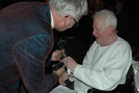 Willem Iven krijgt de KLOMP2005, de Brabantse Dialectprijs, uit handen van Gedeputeerde Luijendijk.