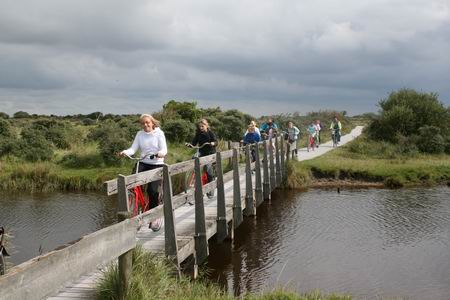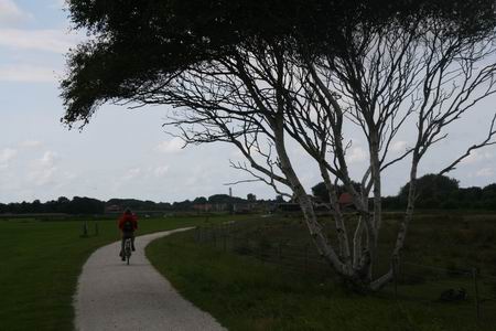 En bij de schelpenpaden horen de bruggetjes over het water, op het oostelijk deel van het eiland. Deze overbruggingen zijn nadrukkelijk verbeterd, breder geworden, voorzien van leuningen. In de jaren tachtig ging mijn moeder nog eens mee naar Schier, ze wilde ook fietsen, normaal al een riskante bezigheid…. Bij de bruggetjes stonden toen nog bordjes "Afstappen", als ik het me goed herinner. Moeder zaliger begon al ver van te voren met haar "O, o, o, ooooohhhhhh…" en schudde en wiebelde, maar slaagde er altijd in aan de overkant te komen. (Voor de goede orde: mijn moeder overleed in 2002, ze werd 96).