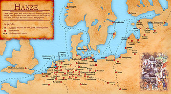Kaart met diverse Hanzesteden (Te vinden op de site van Wikipedia). De Hanze was in de Middeleeuwen een belangrijk samenwerkingsverband van steden en handelaren. Een stad als Groningen hoorde daar ook bij. De naam 'Hanze' kom je in Groningen ook vaak tege, De Hanzehogeschool, 't Hanze Huis, de Hanzewandeling, de Hanze Dag….