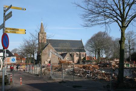 Sloopwerk is altijd indrukwekkend, wat dat betreft kan ik nog steeds met kinderlijke belangstelling kijken naar deze klussen, waarbij de slopers met enig (verondersteld…) welbehagen de grond gelijk maken met welk gebouw dan ook. Van het gemeentehuis is alleen een hoop puin over, en verwrongen staal. Ik hoop dat er iets moois, iets intrigerends voor terug komt. Gelukkig, het openbaar toilet staat er nog, een uitkomst!