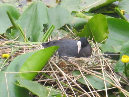 Nee, je hoeft niet dichterbij. Je kunt inzoomen en het beeld wat meer naar je toe halen. De broedende meerkoet trekt er zich niet veel van aan, zolang je omzichtig te werk gaat en geen gekke dingen doet.