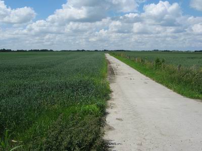 Gezien vanaf de Balmahuisterweg, richting de gasopslag van de NAM nabij Kommerzijl. De betonree lijkt er rechtstreeks naar toe te gaan, houdt dan abrupt op.