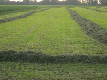 Haast! Het gras moet eigenlijk, voor het noodweer zijn opwachting maakt, van het land. Bijzonder sfeertje door het ochtendzonlicht. Foto vanaf het betonpad aan de oostkant van Noordhorn, land van Van Gosliga.