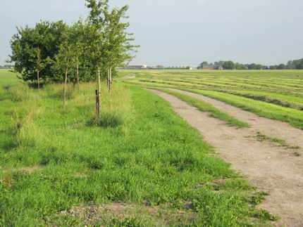 Beeld vanaf de picknickplek aan de Oude Dijk. Oud-collega Lammert Top praat me bij, vertelt over de meer dan tien arbeidershuisjes die ooit langs de Oude Dijk stonden. Zoals hier, restanten van de oude appelbomen getuigen daarvan.
