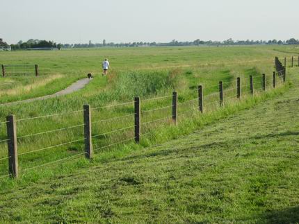 Foto vanaf de Oude Dijk, het betonnen gedeelte. Nog juist te zien, de rennende Lammert Top, en zijn rennende hond…. Op de terugweg naar Niehove! Chapeau!