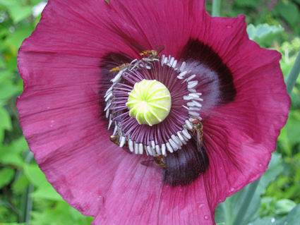 Terug bij huis trekt de prachtige papaver in de achtertuin de aandacht, ook van een groepje sluipwespen, die nu eens niet voortijdig wegvluchten voor de fotograaf….