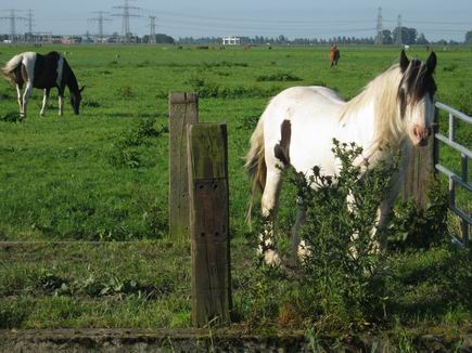 Opvallende paarden in de wei aan de kant van de weg. Dit gebied is trouwens toch bijzonder rijk aan paarden!