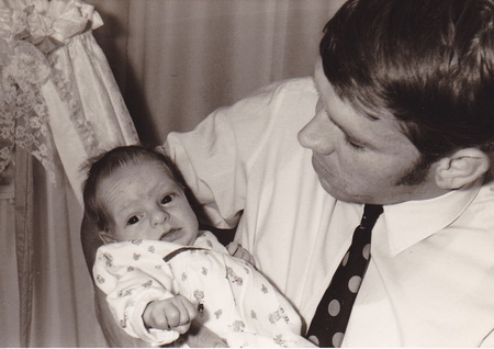 De jonge Jan Reinko in de zorgzame armen van collega Dries Pepping, herfst 1970