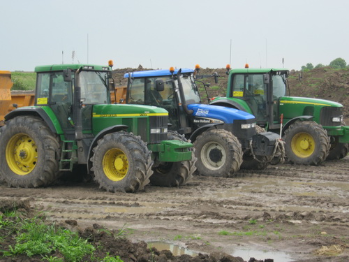 De tractoren staan keurig in weekendformatie. Maandag 24 juni wordt er weer gas gegeven, brommen en brullen de motoren….