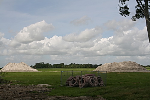 Het landschap aan de noordkant van het Van Starkenborghkanaal tussen Noordhorn en Aduard krijgt iets kunstzinnigs door de zandheuvels en de slangenrollen. Al is vooral de wolkenlucht fraai van aanzien…