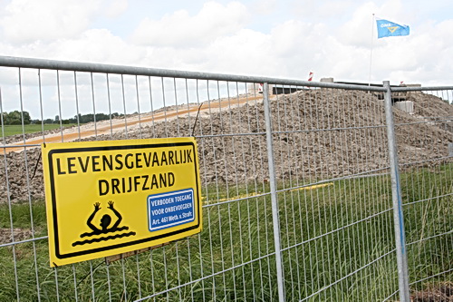 Oei, dat liegt er niet om! Waarschuwing tegen drijfzand! Dat drijfzand ligt er zo te zien nog niet, maar je kunt niet voorzichtig genoeg zijn….