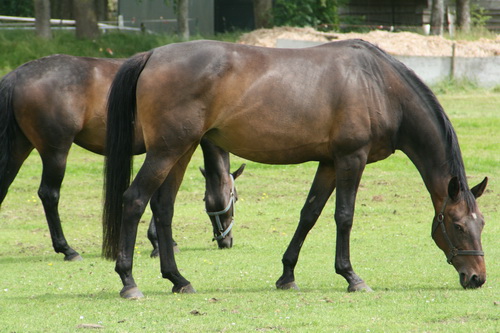 De merries met veulens bivakkeren aan de Badweg, deze twee rijpaarden hebben het grazen aan de Industrieweg overgenomen….