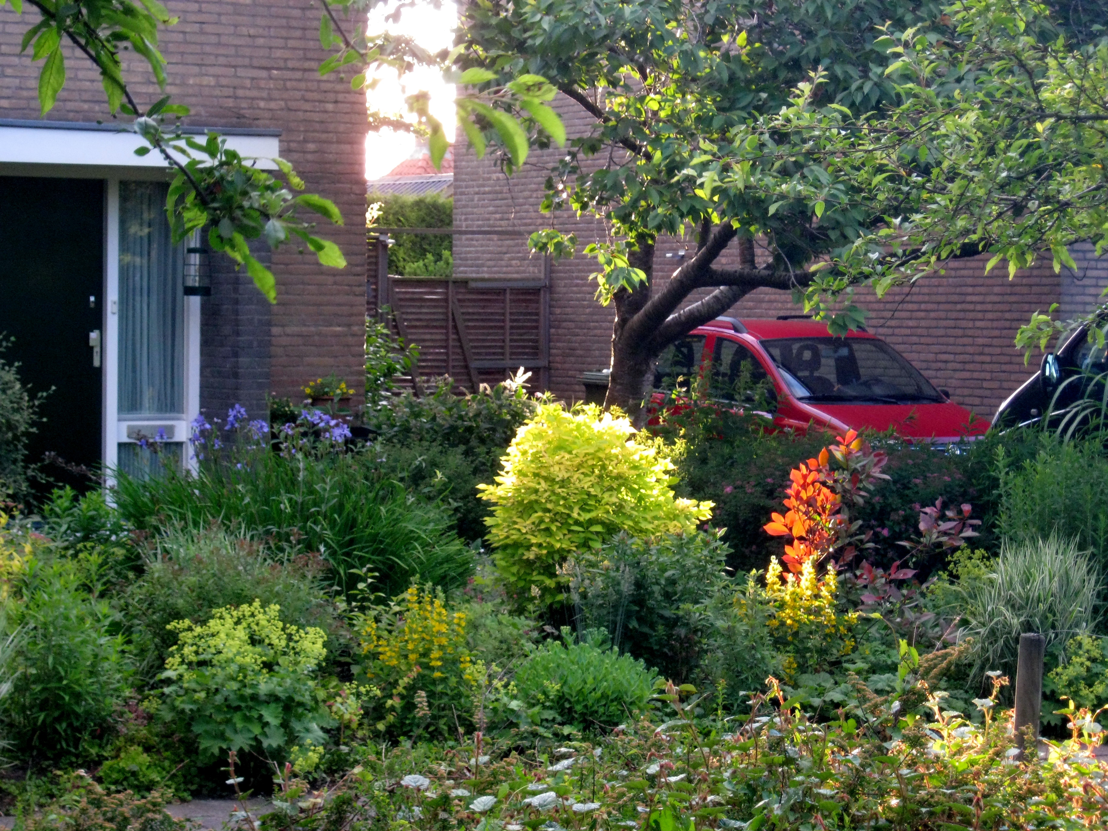 De voortuin bij onze huurwoning aan de Verlengde Oosterweg. Even zet het licht twee planten in het zonnetje…. De rest van de foto is flets, er zit weinig leven in….