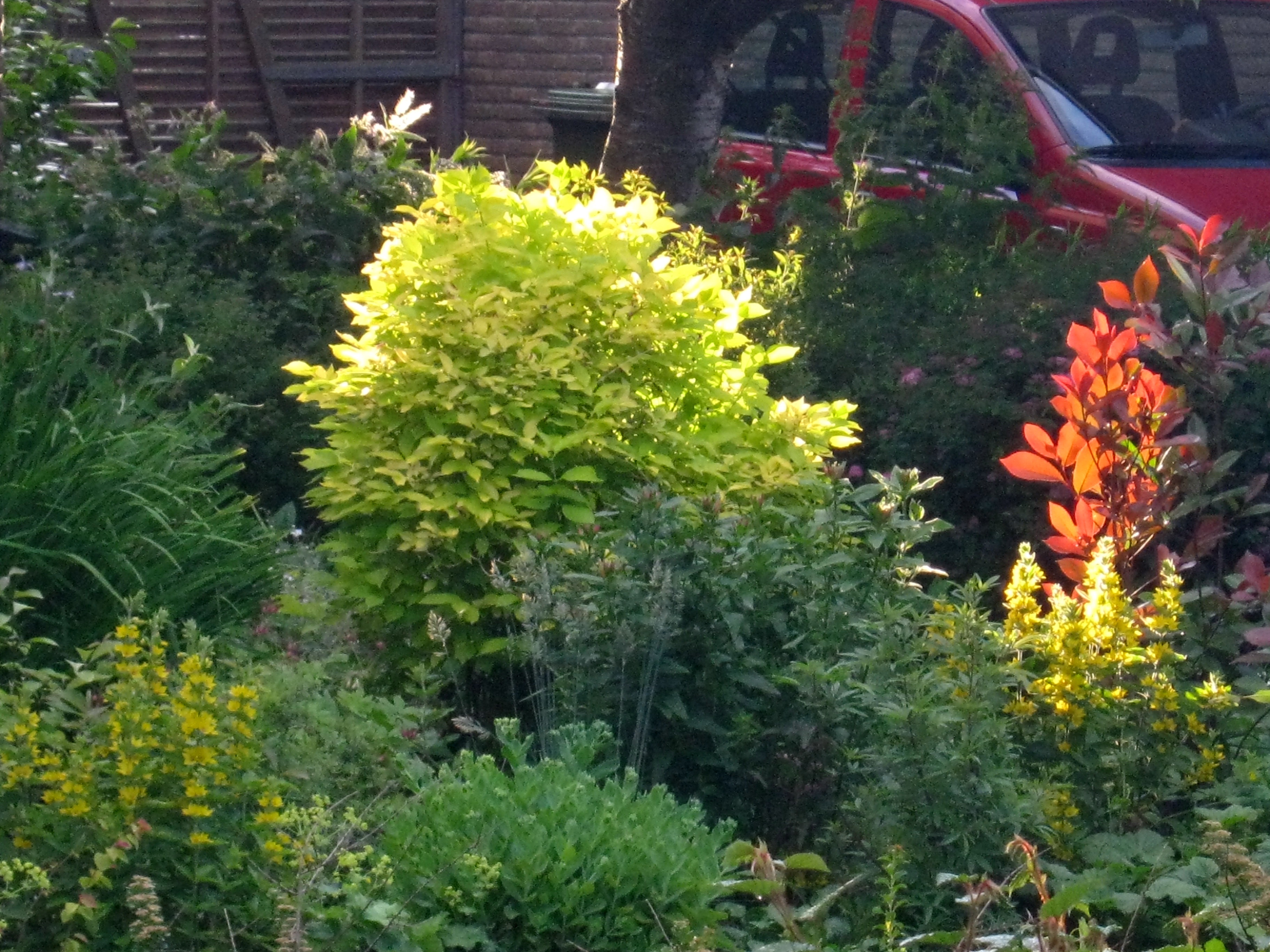 Soms zie je iets, het spelen van het zonlicht op enkele planten in de voortuin bijvoorbeeld. Maak er een foto van! En dan weet je vaak al dat het resultaat tegenvalt…. Soms kun je met fotobewerking iets verbeteren, zoals bij de volgende foto: