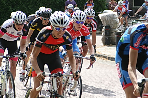 Andere junioren/nieuwelingen tijdens de 40-km-wedstrijd. Ze weten dat ze het onderspit delven, maar blijven gaan voor een goed resultaat!