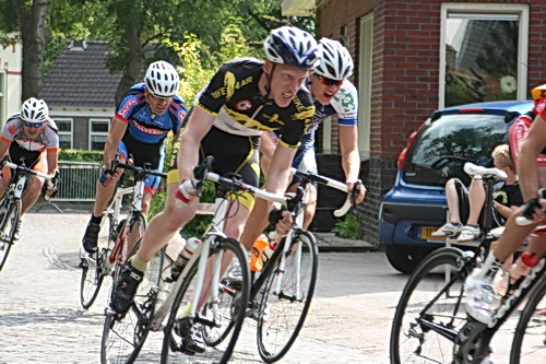 Kijk, een geroutineerde renner uit het grootdorp, Steven Voogd, rijdend voor Bike4Air. Ook iemand die probeert tempo te rijden.