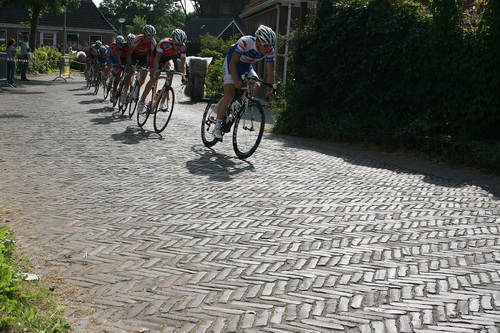 Let op de gezichten, de handen aan het stuur, de houding op de fiets. Niet alleen het vals plat in de Langestraat is ‘lastig’, de Oosterweg is verraderlijker… Zeker als je de helft van de 41 rondjes hebt gehad, doorzetten dus!