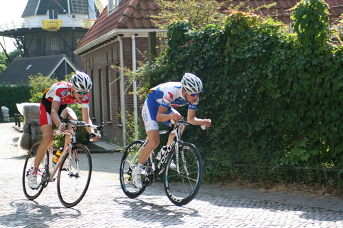 Daar komt ie weer, links. Steven Voogd uit Zuidhorn. Teamgenoot (Bike4Air) Kris Atema is afgehaakt wegens rugklachten. Steven is meer ervaren, misschien helpt dat!