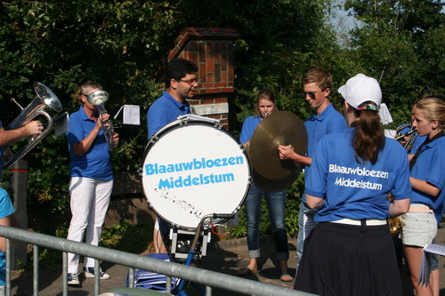 Het Middelstumer dweilorkest “Blaauwbloezen” omlijst deze wielerhappening muzikaal, het hele parcours rond.