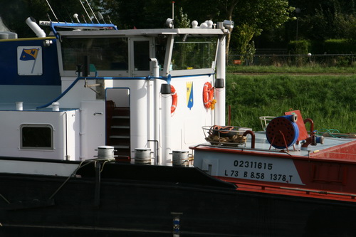 Vlot? Ponton? Werkeiland? In ieder geval staat er een grijper op van Martens & Van Oord die wordt gebruikt bij het uitdiepen van het kanaal niet ver van de brug. Soms even niet, zoals hier. Is er tijd voor de schoonmaak….