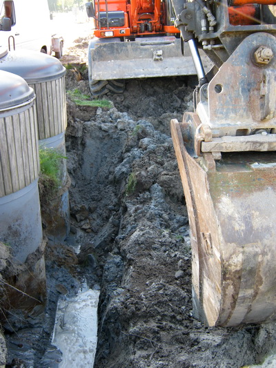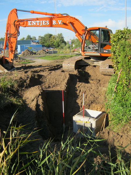 Op de terugweg vanaf Zuidhorn de fiets aan de kant gezet om toch nog wat kiekjes te ‘scoren’. Rechts naast het onbruikbaar geworden stuk fietspad wordt diep gegraven.