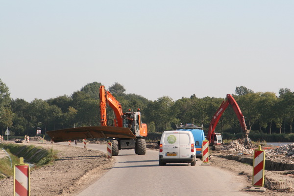 Aan de andere kant van de weg lost de Mechielsenchauffeur zijn lading grond. Bult bult, er kan nog meer bij!