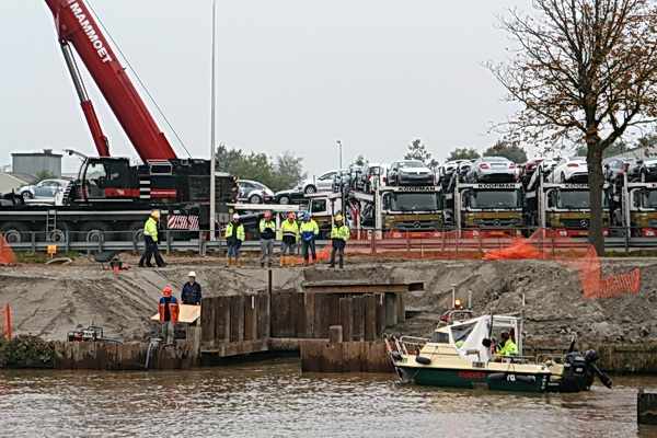 Een stralende oktoberdag, deze maandag 7 oktober! Op het Van Starkenborghkanaal is de scheepvaart weer ‘normaal’, de brug tussen Noord- en Zuidhorn dus ook regelmatig in de hoogste stand. Even wachten a.u.b. Dat wachten was ook afgelopen zaterdag het parool, toen pas tegen half twaalf het groene licht werd gegeven voor de verzinking van de nieuwe buizen van Gasunie en Enexis. Deel 4 van een vervolgverhaal dat vele direct betrokkenen en belangstellenden in zijn ban hield: