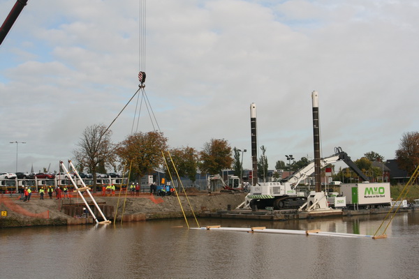 Dat viel nog mee, het weer op woensdag 9 oktober! Alhoewel, het is nu wel erg vroeg donker geworden, koeler, en af en toe sputtert het. Vanmiddag toch nog even er op uit om te fotograferen (riolering, tunneltoestanden etc. Zie de komende dagen: www.noordhorntoenennu.com). Hier ga ik verder met deel 7 van het fotoverslag over het verzinken van de nieuwe buizen van Gasunie en Enexis in de bodem van het Van Starkenborghkanaal tussen Noord- en Zuidhorn: