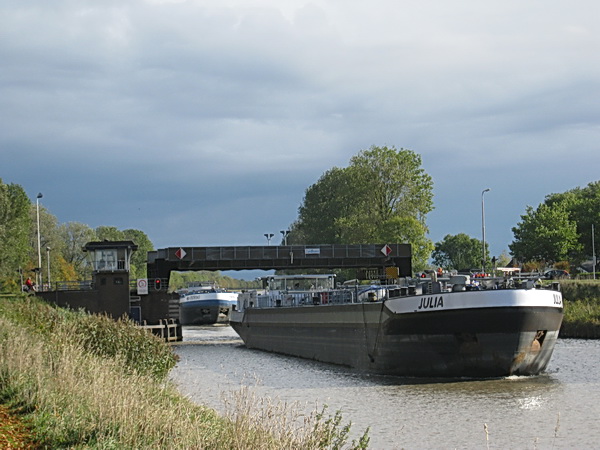 Kijk, “Hendrik” gaat naar Drachten, de schepen kunnen weer varen. De “Julia” ligt al ongeduldig te wachten aan de oostkant van de brug…