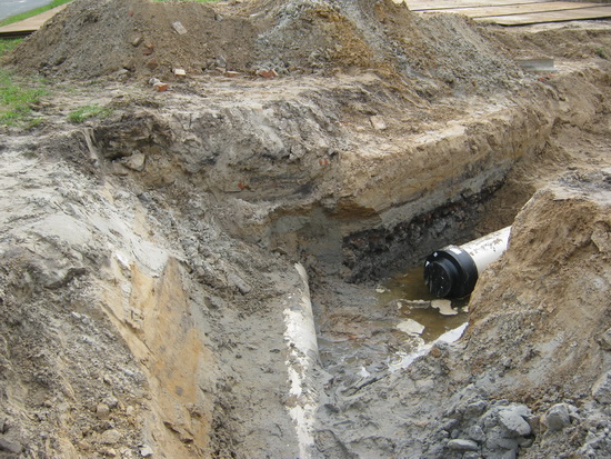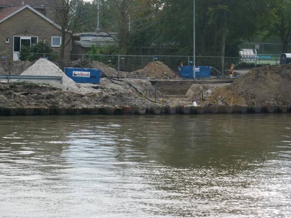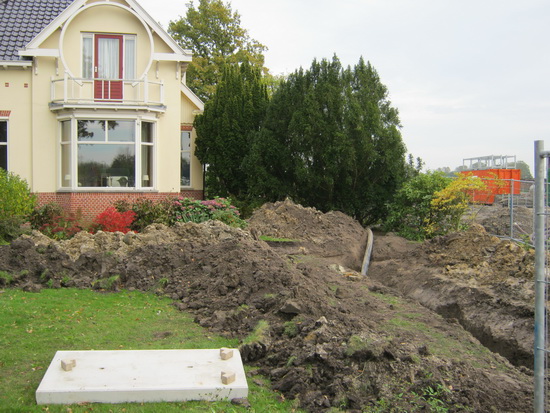 Situatie bij de verzinkingsplek, aan de zuidkant bij het oude gymgebouw van de Westergast. Het uiteinde van een van de verzonken buizen is nog net te onderscheiden….