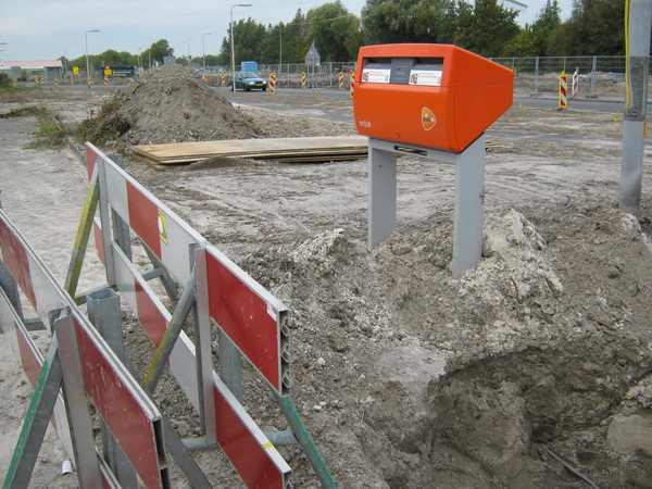 Eén serie foto’s van afgelopen zaterdag 19 oktober jongstleden (en ik heb een serie van de rioleringstoestanden weggelaten, inmiddels te zeer achterhaald…) Waterleidingbuizen, verkeersborden, tunneltoestanden en nog steeds een moeilijk bereikbare oranje postbus van PostNL….: