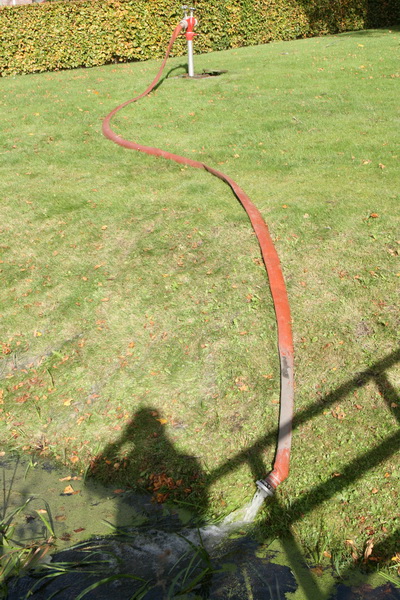 Hé, hier is de kieker onverwacht verworden tot beeldelement…. “Ergens” zijn ze met de waterleiding bezig. Drukvermindering? (Voortuin Sicke Benninghestede)